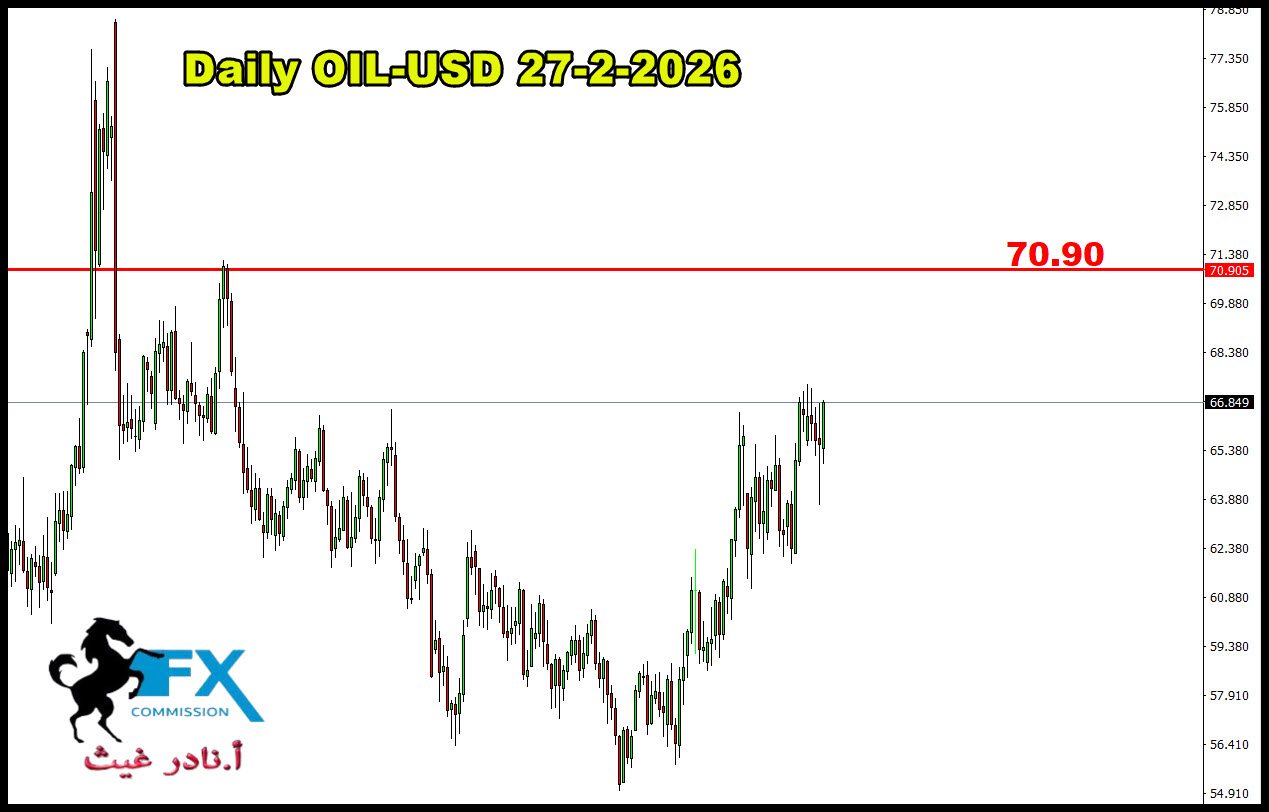 27-2-2026 OIL/USD النفط نرى انه يسعى الى الزحف الصاعد للإستهداف مستوى المقاومة التالي المتواجد على 70.90 دولار كاش للبرميل مبدئياً خلال الفترة المقبلة. https://vb.fx-arabia.net/uploaded/1403_11772195865.jpg |
