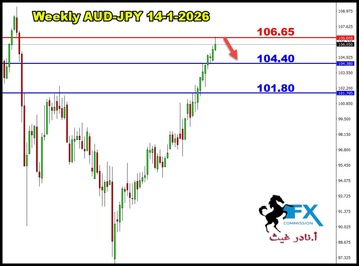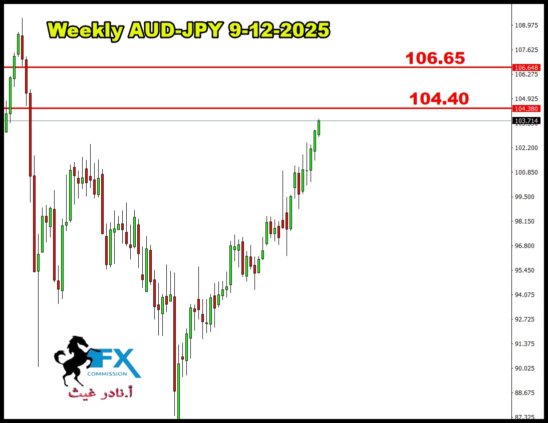 زوج الاسترالي ين اشرنا امس ان الزوج تقنياً على فريم الويكلي انه للبيع من مستوى 106.65 وبهدف كبير.