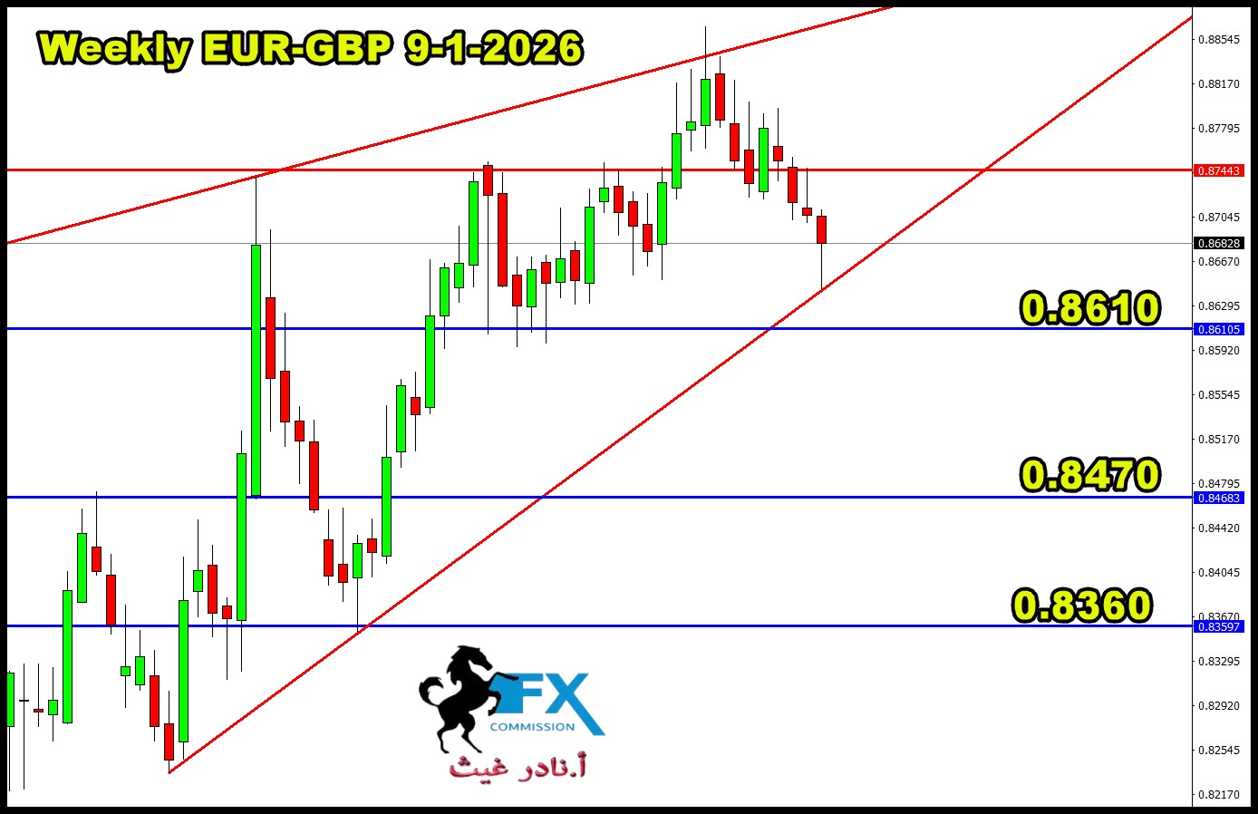 واستهداف 0.8610 ثم 0.8470 وصولاً الى نهاية الموجة 0.8360 لكن