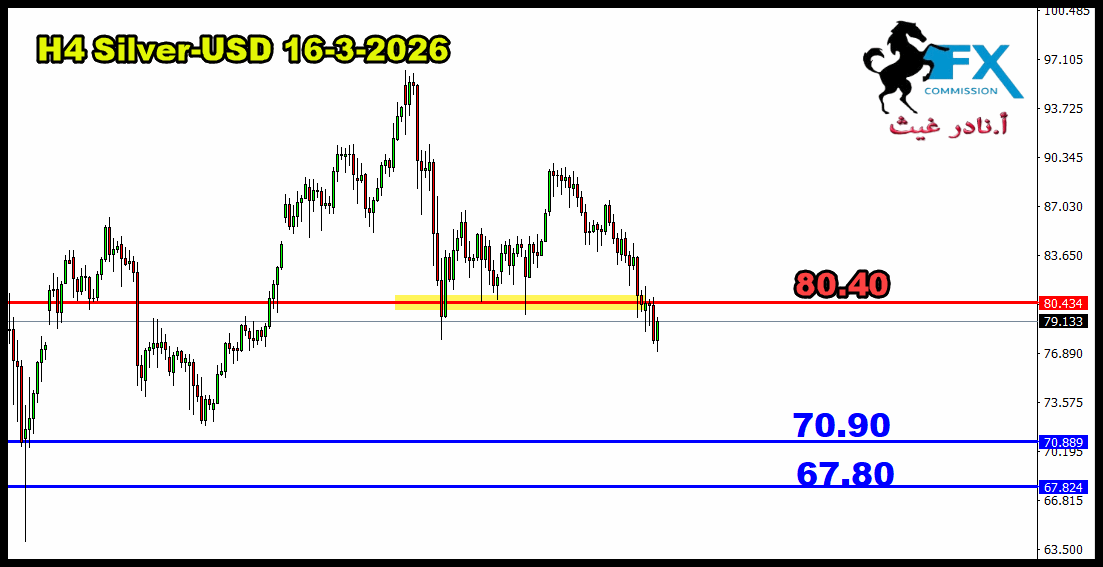 9-3-2026 Silver /USD أيضاً الفضة تقنياً اذا بقيت الأسعار تتداول اسفل سعر 85.10 دولار، سيبقى سيناريو التراجع قائم للعودة الى استهداف 76.45، فيما اي تفكير بالشراء يكون فقط من مستوى 70.90 والثاني على 67.80 دولار تقريباً. https://vb.fx-arabia.net/uploaded/1403_11773061323.jpg |