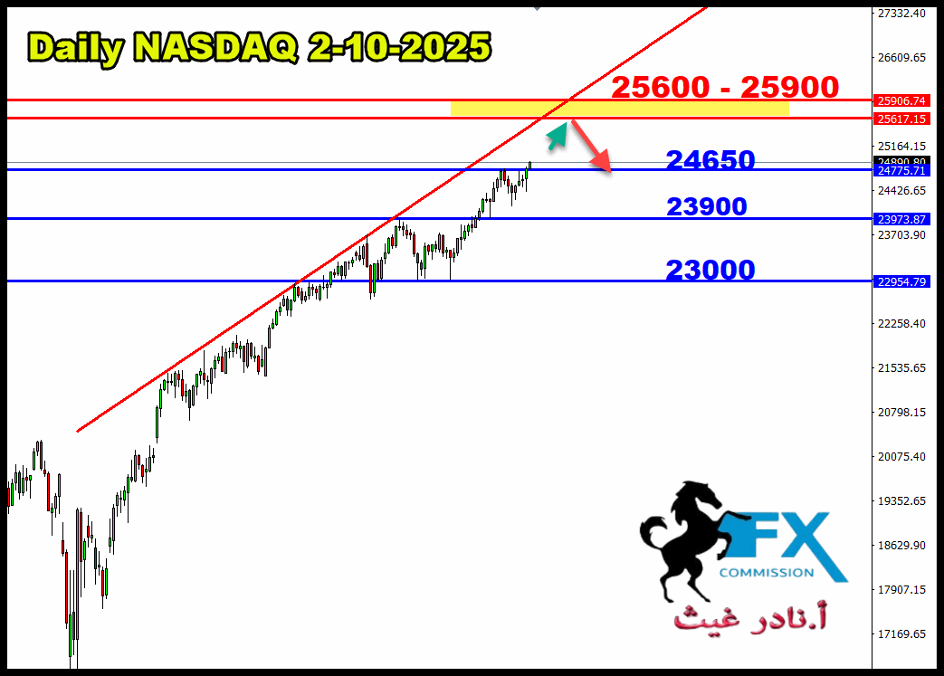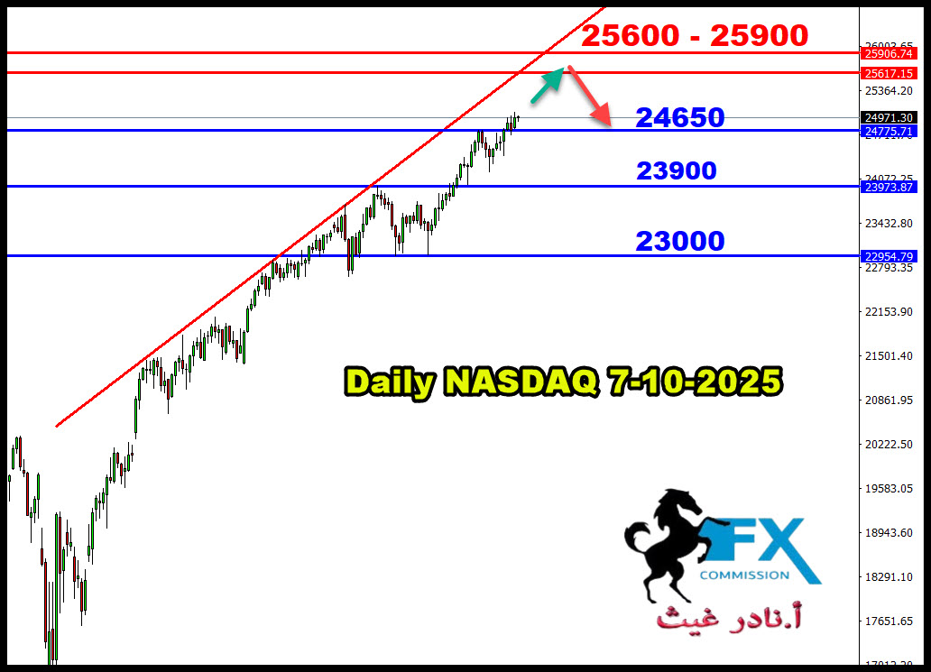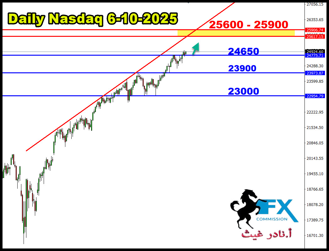 مؤشر ناسداك تقنياً على فريم اليومي اخترق اعلى 24650 واغلاق اعلاه الأسبوع الماضي.
